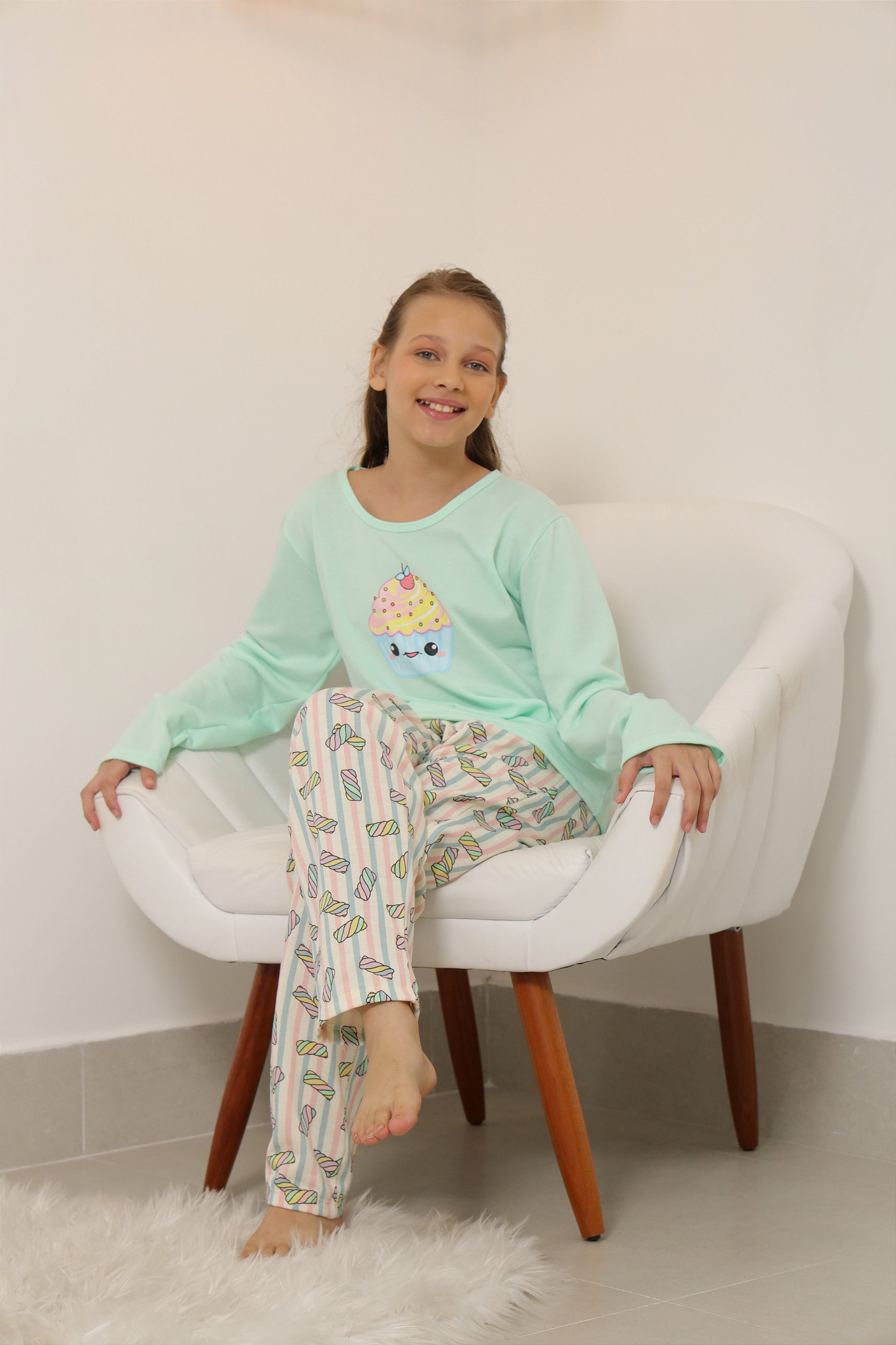 O pijama cupcake, além de fofíssimo é super quentinho! Perfeito para o inverno. Pijama em moletom de manga longa com calça, com estampa exclusiva e divertida!